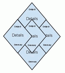 If any of these three gets too large, it can, in turn, be constructed of smaller diamonds. These building blocks can be combined and/or nested to build a complete post. If you want to make several points, it is a good idea to dedicate a diamond to each, and nest them into a larger one that provides the context, states the points at the top and summarizes them at the end:
