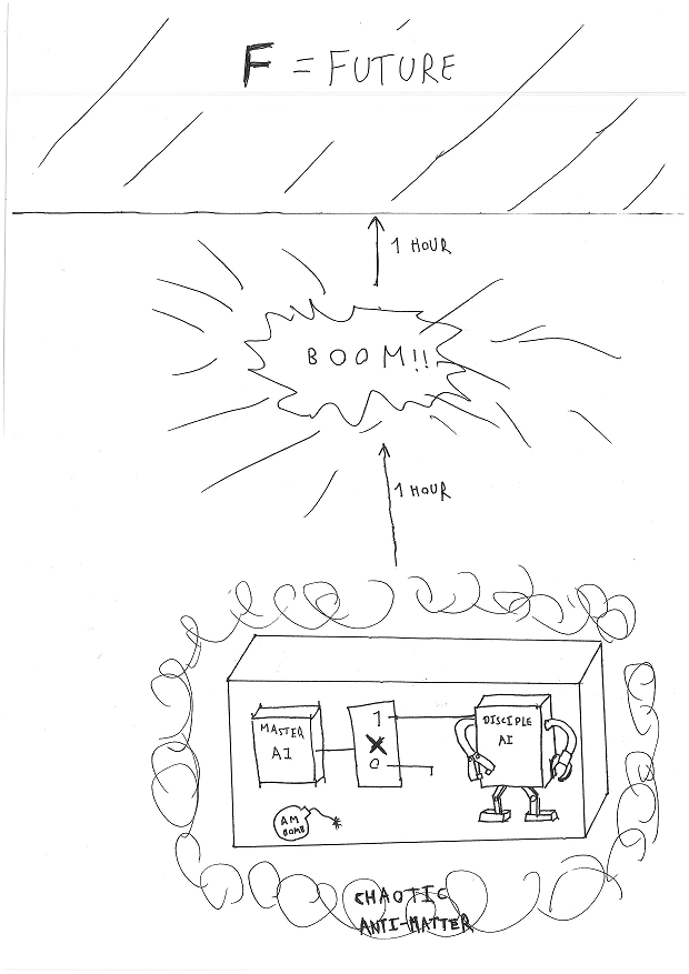 Specifically, the master AI will build the source code, according to its preferences, and store it somewhere. Then, exactly 30 minutes after the experiment began (and hence 30 minutes before the explosion), that source code will be copied into the disciple AI. If the source code is not empty, the disciple AI will be turned on.
