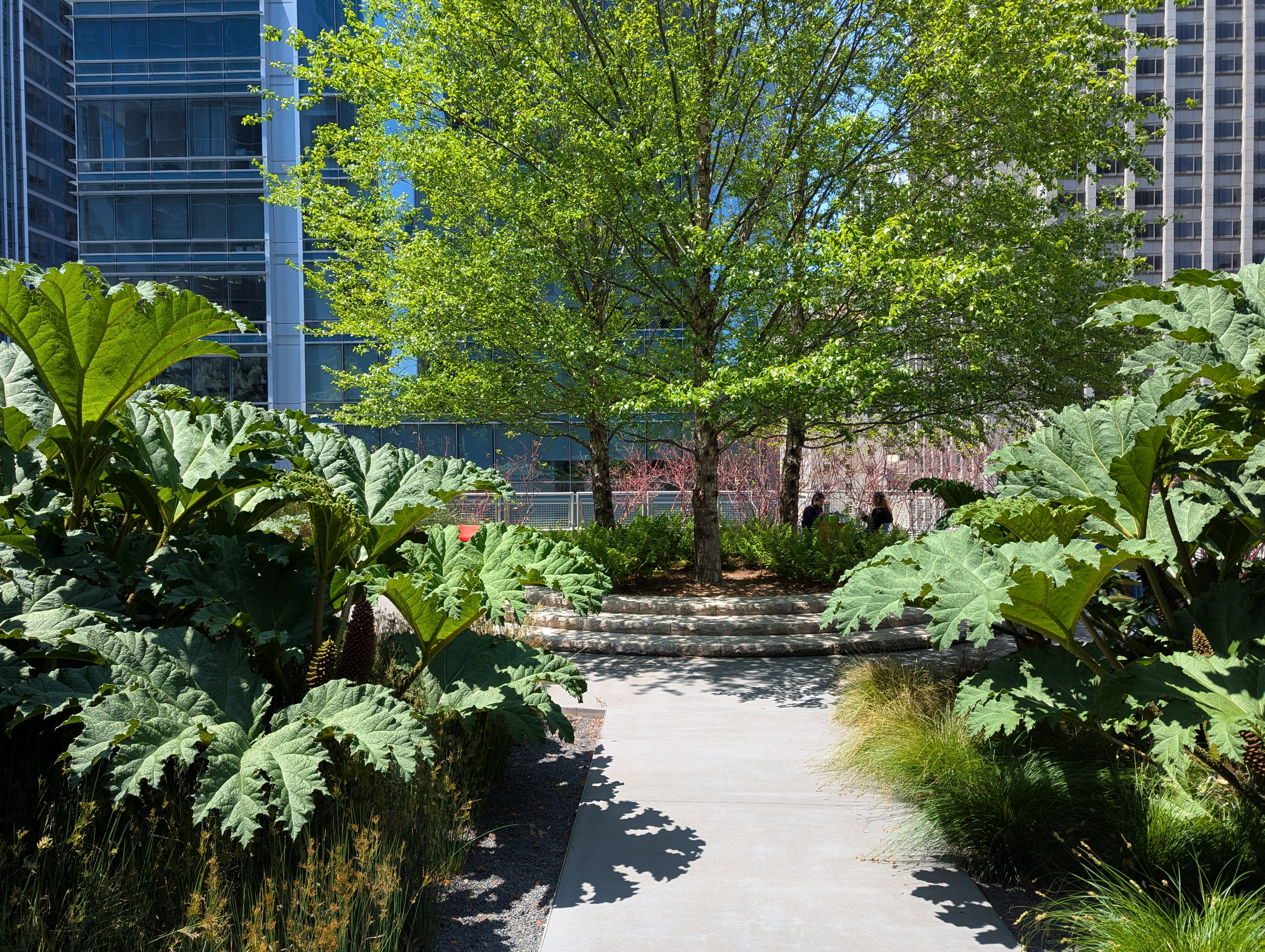 Address: The northern end of Salesforce Park, 37°47'26.0"N 122°23'43.2"W, by the Beale St. elevator. We'll be in a ring-shaped parklet, near a grove of Dinosaur Food plants.