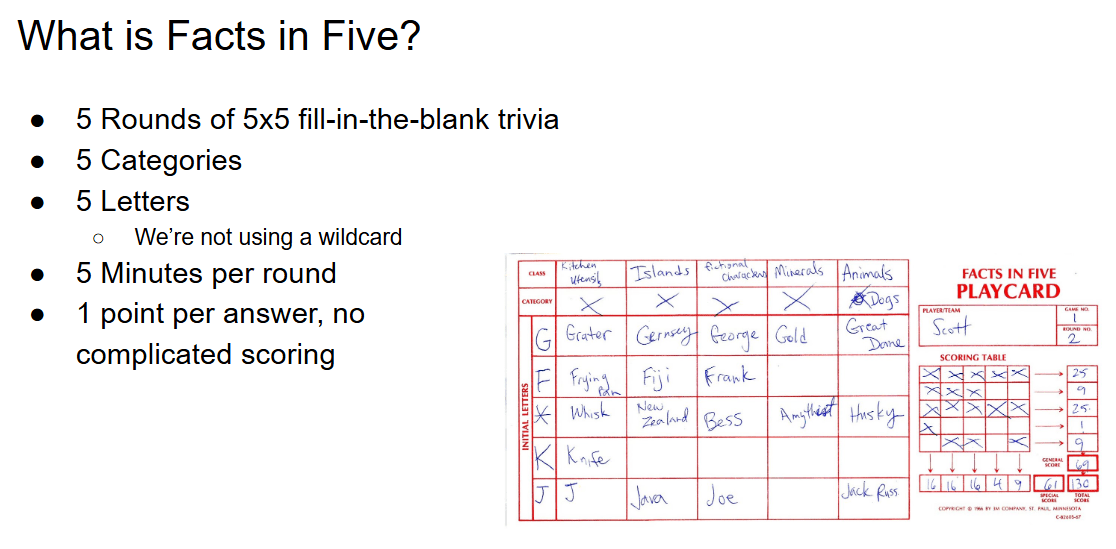 This week, we'll be experimenting with a kind of trivia game. Here is approximately all you need to know: