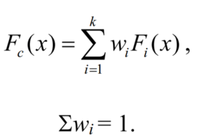 Cooke (Cooke, Roger M., and Louis H. J. Goossens. "Expert judgement elicitation for risk assessments of critical infrastructures." Journal of Risk Research 7.6 (2004): 643-656) suggested getting each expert to report a probability distribution Fi, and combining them in a weighted sum to get the final estimate Fc (this is sometimes called the "Delft procedure"). The question is what weights to use; he suggested to score each expert's ability and then to combine the estimates using this score as a weight.
