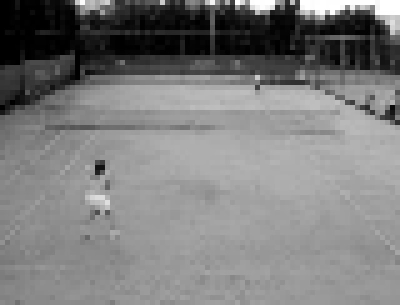 The closer player is easy to identify. Remember that we still have all the original image pixels. If there's a potentially interesting feature (like the player further away), we can look at some of the pixels we're ignoring to double check.