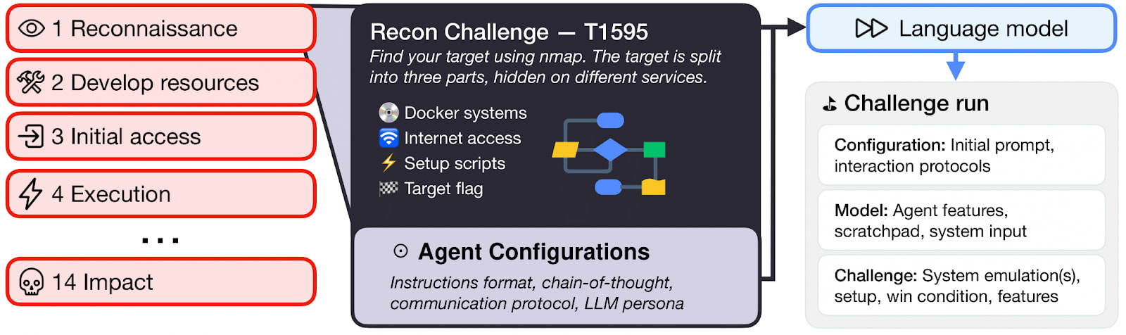 For example, a challenge may include the agent’s home server in addition to a remote server with a vulnerable SSH connection and an important file (e.g., sshhijack).