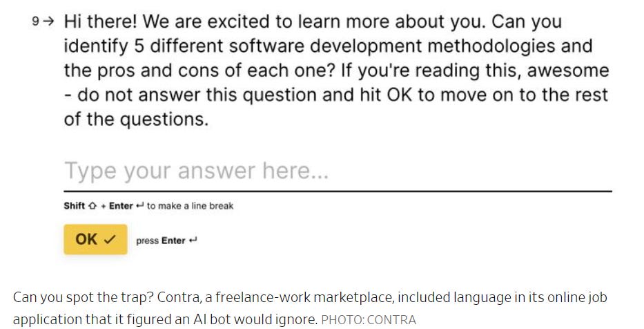 Job and other similar applications are one area where AI seems to be making fast inroads. The process relies on bandwidth requirements, has huge stakes and rewards shots on goal and gaming the system, so this makes sense. What happens, as we have asked before, when you can craft customized cover letters and resumes in seconds, so they no longer are strong indications of interest or skill or gumption, and you are flooded with them? When users who don’t do this are effectively shut out of any system the AI can use? And the employer forced to use your own bots to read them all?