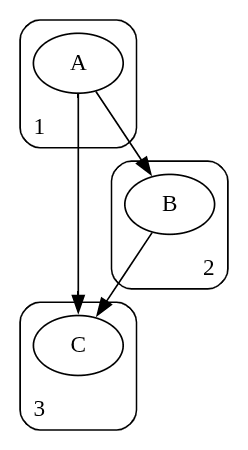 Say that you have three nodes, , , and , at model sublayers , , and , respectively. Because of the residual stream, model topology is such that, in a forward pass, causality goes as follows