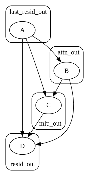 Say you now have four nodes, , , , and , at model sublayers last_resid_out