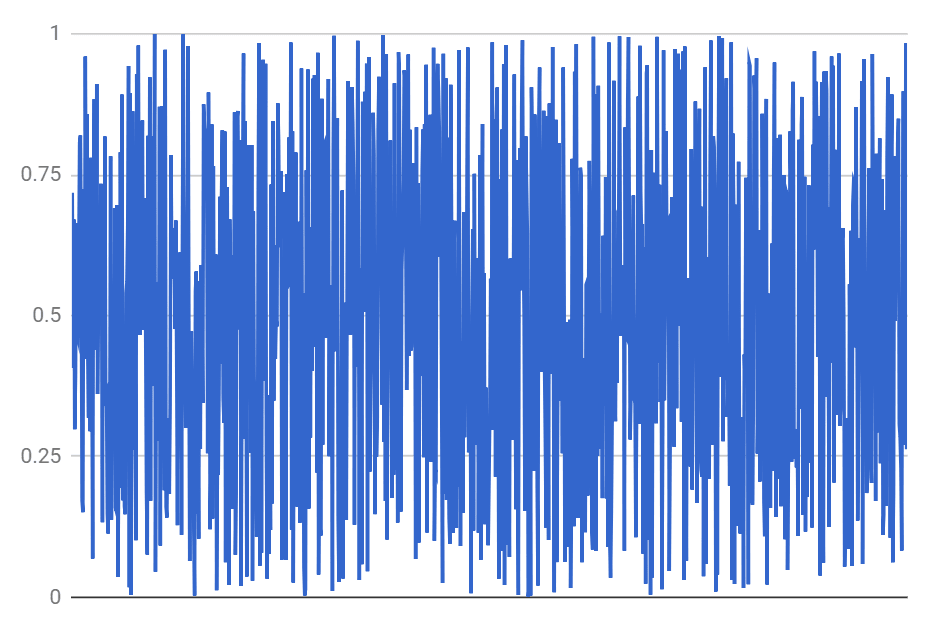 So, let's have our toy model of the universe as a sequence of random numbers. For definiteness, let's start with a uniform random sequence with elements between zero and one. While it is possible to get more random than that, it would require some effort. So, here is a sample sequence: