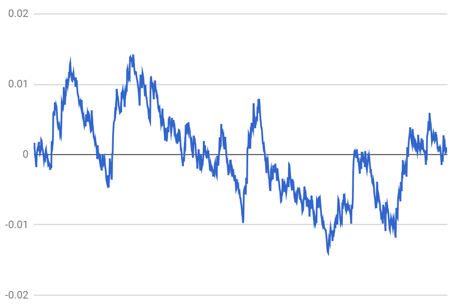 Now, let's take stock of what has happened: we started with uniformly distributed random noise, picked an "arrow of time", and ended up with fractal power-law fluctuations. Whether these fluctuations mimic an actual dynamical system, I am not sure, but if they do, this would mean creating apparent, if chaotic, order from randomness.