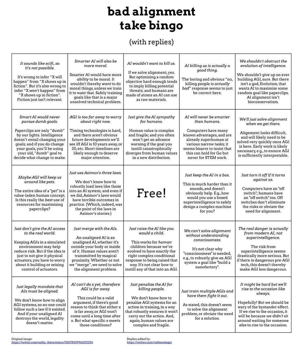 Bad AI NotKillEveryoneism Takes Bingo Card