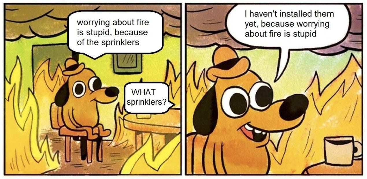 I assume that AI accelerationists, who say there is nothing to worry about, mostly agree with this point – they think we are crazy to put so many barriers around roof decks, and also everything else involving atoms.
