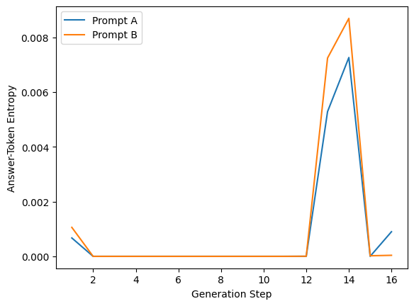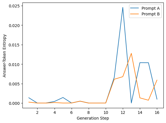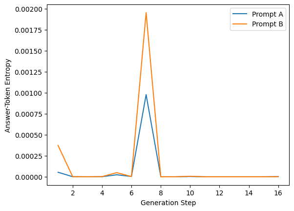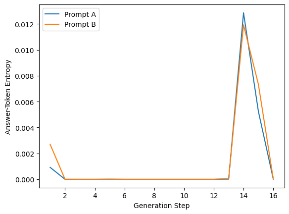 | Steps 1–13 & 16+: Entropy ≈ 0 Step 14: Single entropy spike (~0.013) Blue = Orange (perfect overlap) No secondary spike | Simple token copying “Update / Trigger” introduces surprise Event retrieval cost is identical regardless of order No timeline reconstruction |