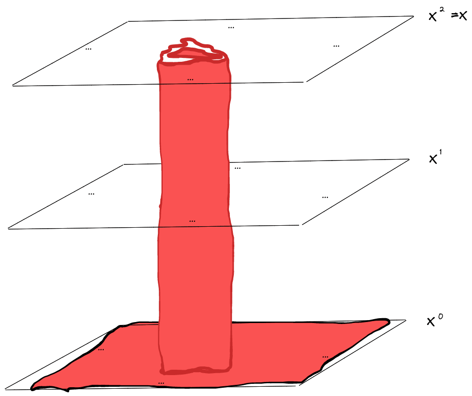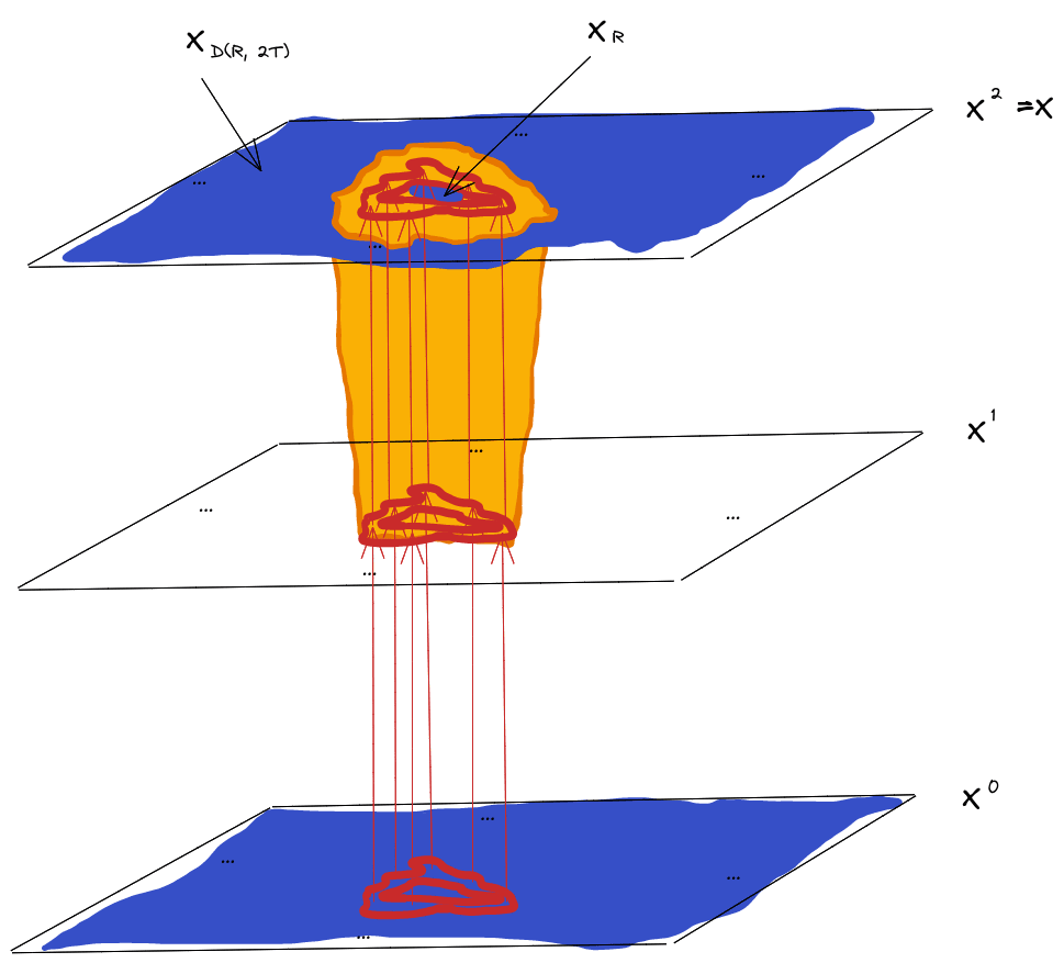 Note that the “cylinder” (including the “base”) separates into two pieces - one contains everything less than distance from , and the other everything more than distance from . The separation indicates that is a Markov blanket between those pieces… at least within the do()-operated resampling process.