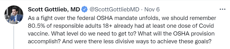 This also seems to implicitly echo multiple other fallacies, which I know Scott knows better than. There is no ‘level we need to get to,’ there are only benefits to marginal improvements, and the existence of other ways to raise levels that we aren’t doing doesn’t change the question of the OSHA rule unless we can choose those options, nor does ‘divisiveness’ represent the obviously primary cost of policy.