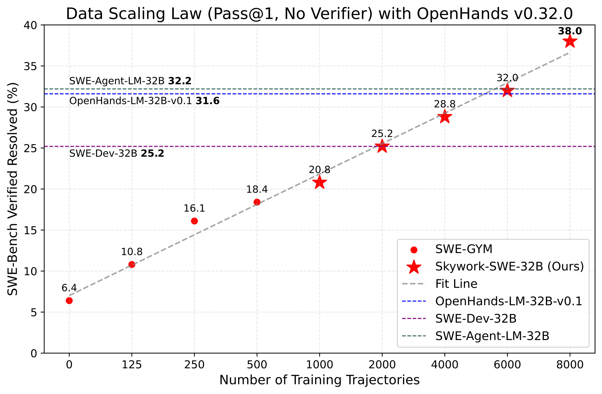 But I've been increasingly starting to wonder if software engineering might not be surprisingly easy to automate when the right data/environments are used at much larger scale, e.g. Github issues (see e.g. D3: A Large Dataset for Training Code Language Models to Act Diff-by-Diff) or semi-automated pipelines to build SWE RL environments (see e.g. Skywork-SWE: Unveiling Data Scaling Laws for Software Engineering in LLMs), which seem potentially surprisingly easy to automatically scale up. It now seems much more plausible to me that this could be a scaling data problem than a scaling compute problem, and that progress might be fast. Also, it seems likely that there might be some flywheel effect of better AIs -> better automated collection + filtering of SWE environments/data -> better AIs, etc. And 'Skywork-SWE: Unveiling Data Scaling Laws for Software Engineering in LLMs' has already shown data scaling laws: