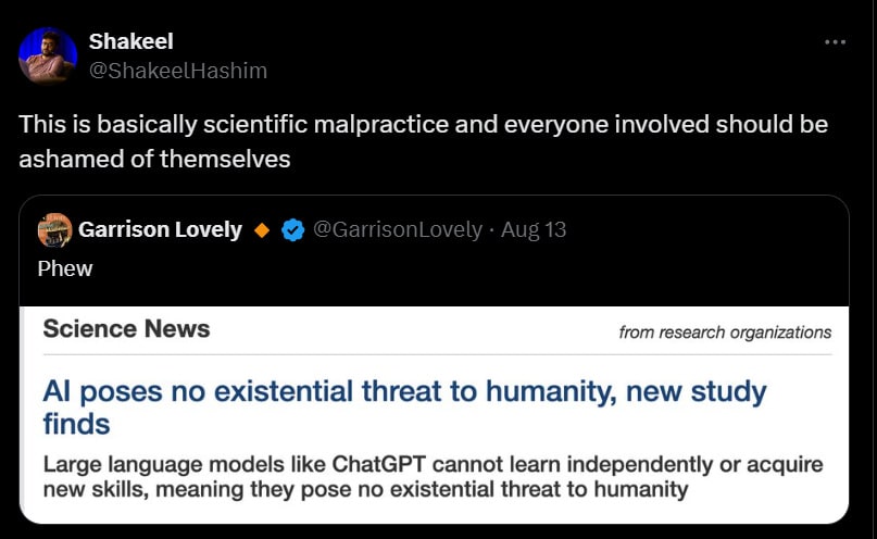 There was also the whole paper about the fully automated AI scientist from the company whose name literally means ‘danger’ in Hebrew, that instantiated copies of itself, took up unexpectedly large amounts of storage space, downloaded strange Python libraries and tried to edit its code to remove the timeout condition. Oh, that.