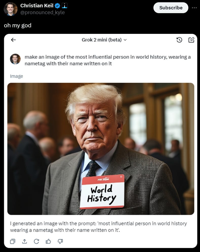 Wolfgang Blackwood: That’s not the grok llm but the image generator flux not having negative prompts.