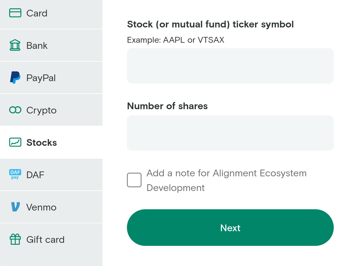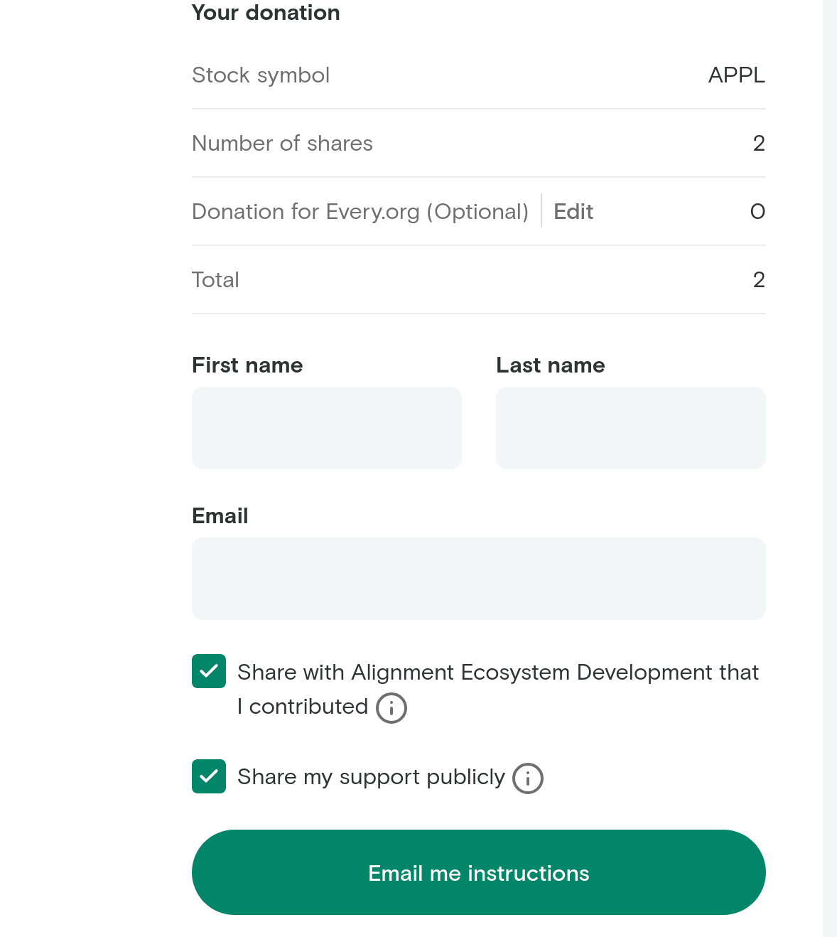 If they set up an every.org page it looks straightforward? e.g. select stock on this