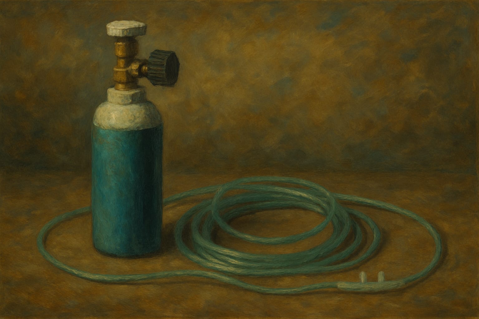 Sitting in the hospital with a tired child watching Bluey on a small screen attached to an impressively solid yet movable arm, I opened my laptop and continued Oxygen Quest. One challenge is that even if you have a canister, oxygen is a regulated medical substance. Of course. They can't just give it to you; you need a prescription. And like, it is something you can hurt yourself with. If you're being paternalistic, it's not crazy to be paternalistic about it. But my spouse is a trained ICU nurse and is competent to administer oxygen and monitor its effects.