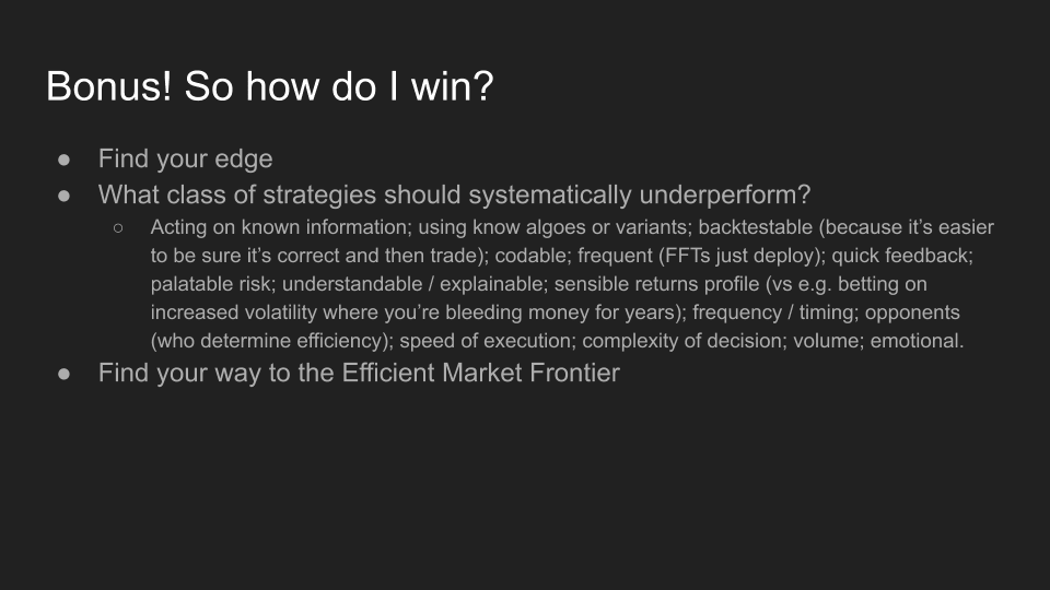 Yes. Actually, I made a bonus slide that I think will help here. This is not quite an answer, but I think a question related to what you’re asking is "How do I win?" And I think you win by finding that edge, on what I would call an efficient market frontier.