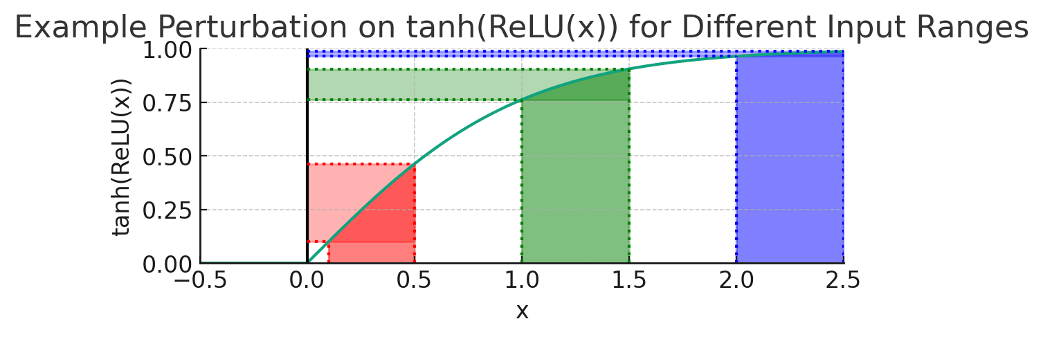 From the figure, we can see that when the inputs are small, the output of tanh(ReLU) will be relatively sensitive to the input, and adding Gaussian noise can significantly perturb small feature activations. On the contrary, larger inputs to the activation function are much more robust to perturbation, as they all maps to similar values close to . Hence, this perturbation forces the model to learn to generate feature activations that are either strictly 0 or close to 1, which makes behave even more like , especially when we set to be large.