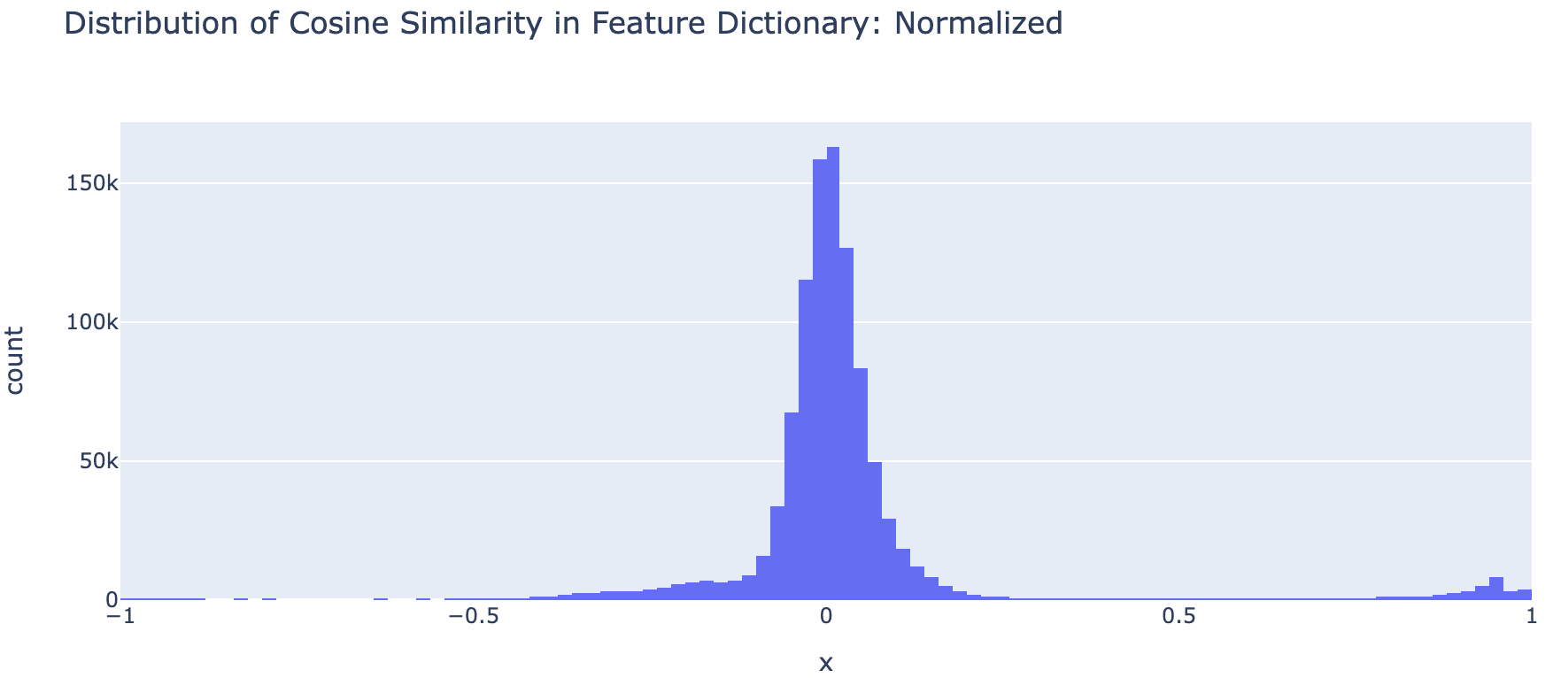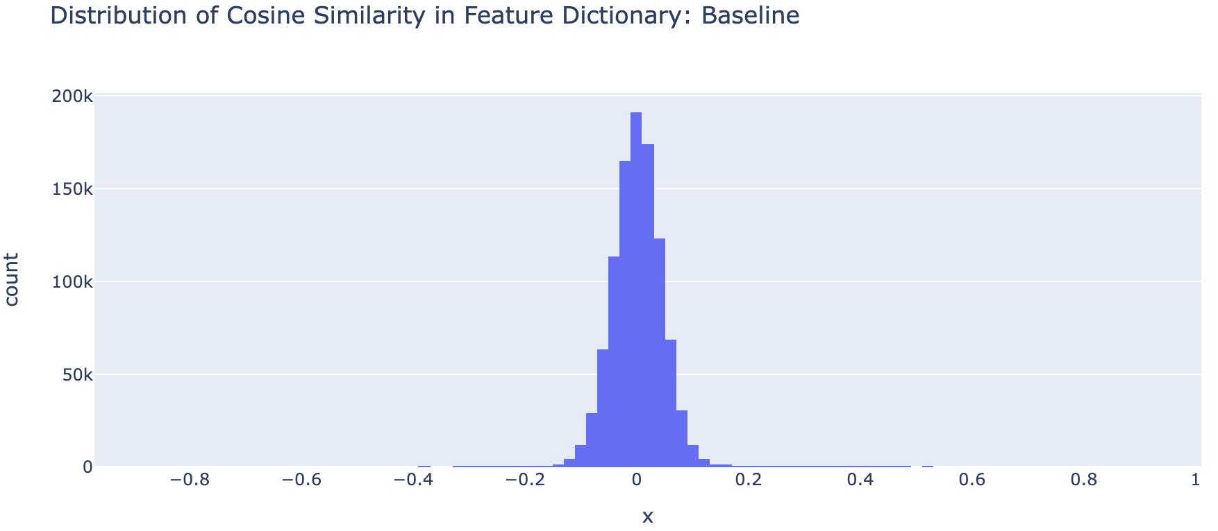 Next, I calculate the distribution of cosine similarity of the feature dictionary: