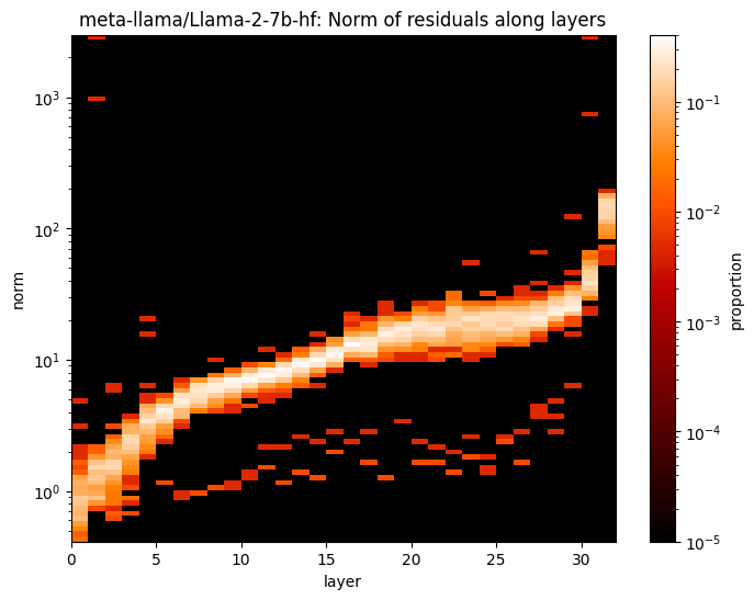 I first analyzed the norm distribution of the feature vectors along the layers: