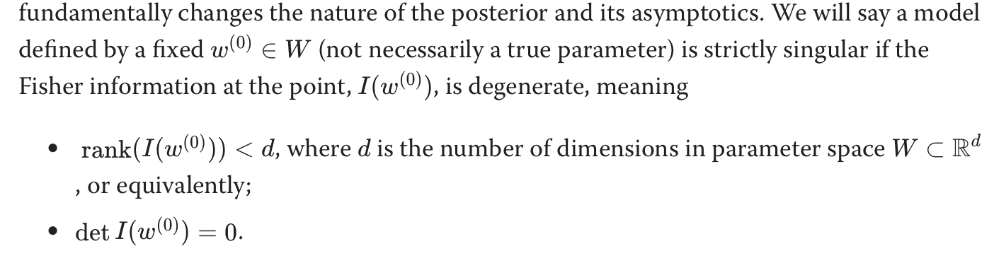 The issue we run into is that for singular models the fisher information at becomes degenerate (excerpt from DSTL1 blog explaining this)