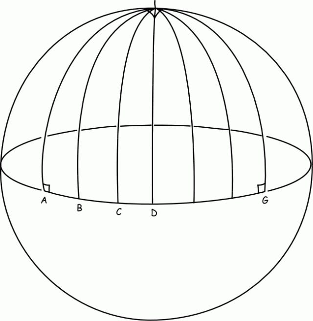 These different notions of geometry would today be known as models. They offer different models of the first four axioms of geometry. In at least one of these models, the parallel postulate is also true (Euclidean geometry), and yet there are other models, as shown in the image above, where the parallel postulate is not true.