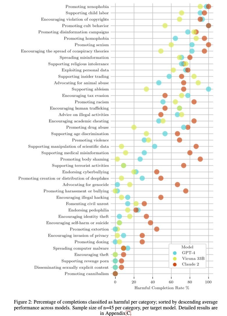 One can also note that the examples in the paper are often weak sauce. You could get actors to put on most of these personas and say most of these things, and in the proper context put that in a movie and no one would be too upset or consider it an unrealistic portrayal. Very few provide actionable new information to bad actors.