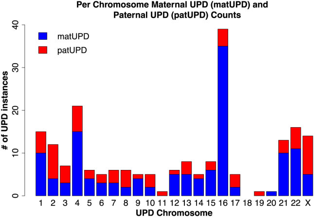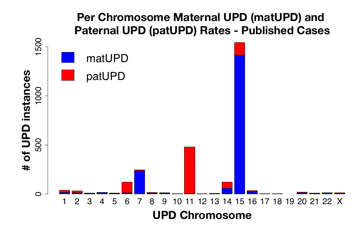 Published UPD cases by parental origin and chromosome. Figure S6 from (Nakka et al., 2019)