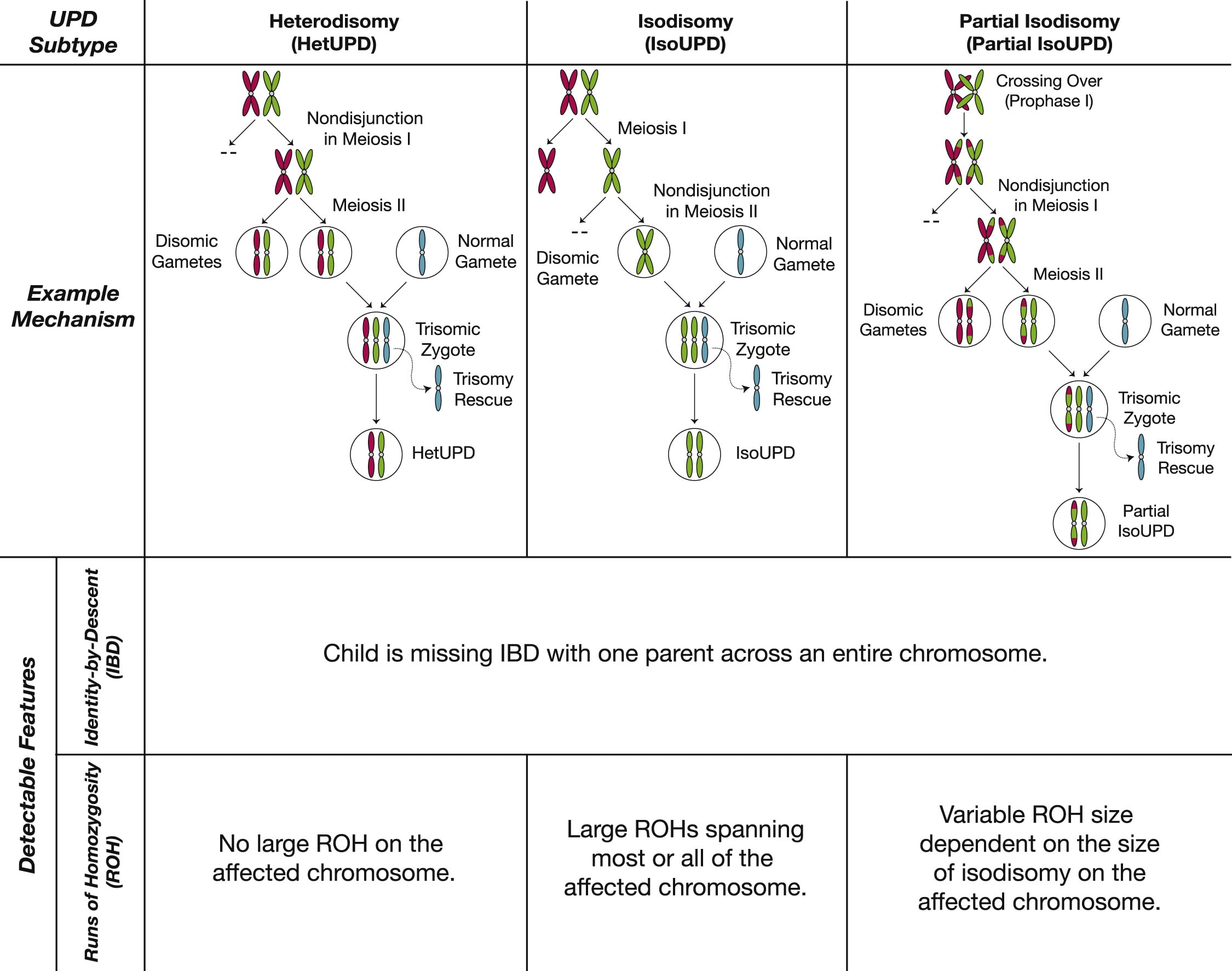 UPD resulting from trisomie illustrated. The image is an edited version of Figure 1 in (Nakka et al., 2019)