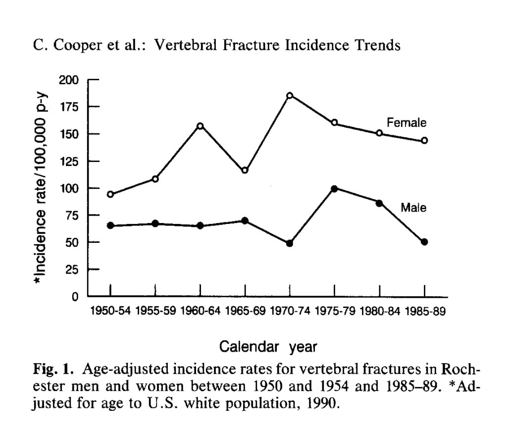 I found Cyrus Cooper, lead author of Cooper et al. 1992 published long before the NRC committee had been assembled, entitled “Secular trends in the incidence of postmenopausal vertebral fractures”. The opening paragraph is a banger.