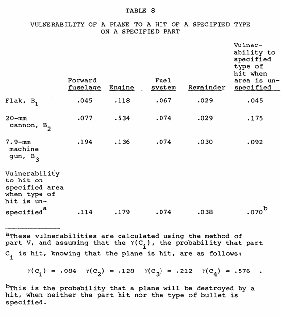 Speaking of which, there is no source for the example data, which is noted as "hypothetical" in the report. The hypothetical data set was for a 1000-plane raid on a single objective, which implies a strategic bombing mission context, and thus that the planes were 4-engine strategic bombers like the B-17 instead of the 2-engine bomber in the illustration (this is a nitpick, but I thought it was neat). There is also no exact hit location data, with hits being aggregated by category.