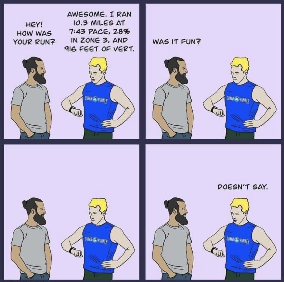 Once you understand the basics of running, it’s a fun sport/hobby to do by yourself or with friends, the runner’s high feels good, there’s a sense of accomplishment from getting faster, the aerobic exercise gives you energy throughout the day, and you sleep better at night.