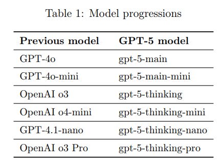 The GPT-OSS systems card told us some things about the model. The GPT-5 one tells us it’s a bunch of different GPT-5 variations and chooses which one to call, and otherwise doesn’t tell us anything about the architecture or training we didn’t already know.