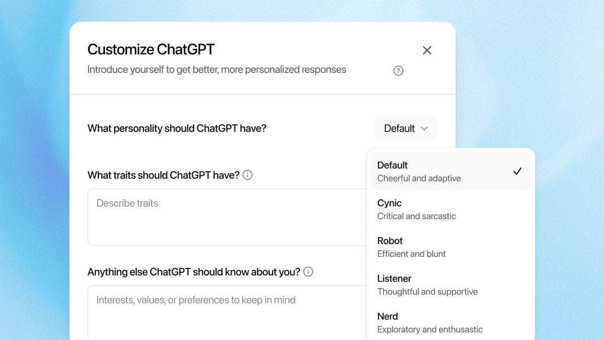 There are five ‘personality’ options: Default, Cynic, Robot, Listener and Nerd.