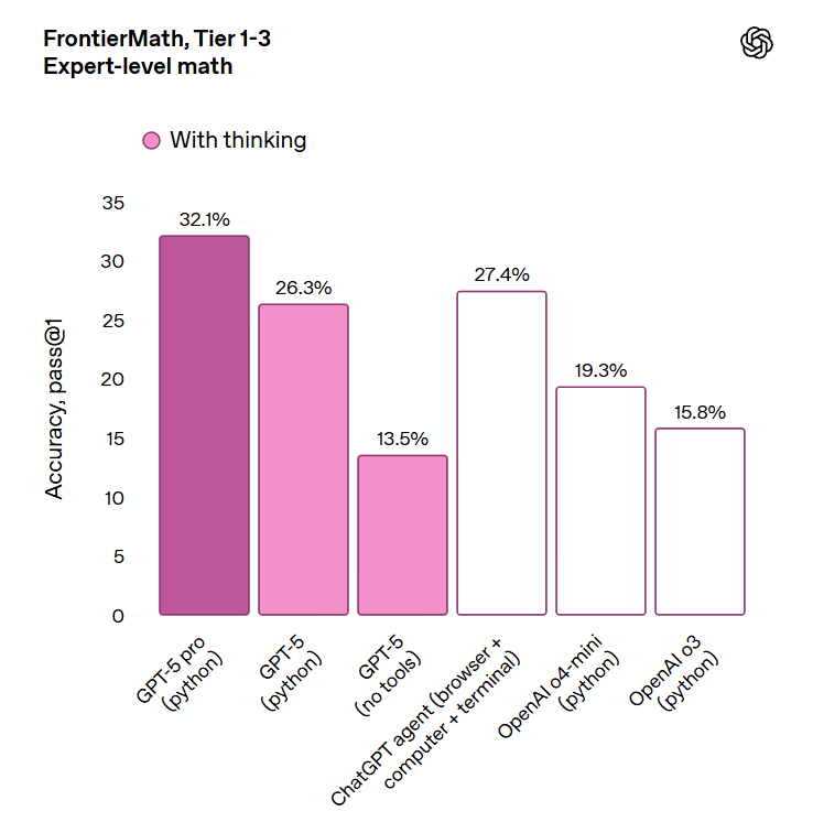 On FrontierMath, Epoch reports GPT-5 hits a new record of 24.8%, OpenAI has reliably had a large lead here for a while.