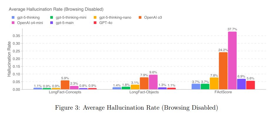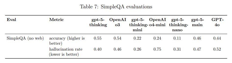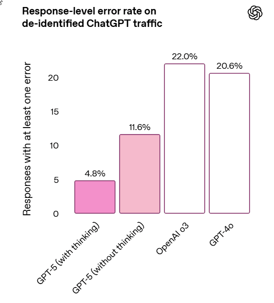 If this holds up in practice it is a dramatic improvement from o3 the lying liar. Even if GPT-5 was otherwise the same as o3, dramatically cutting hallucinations is a huge quality of life improvement.