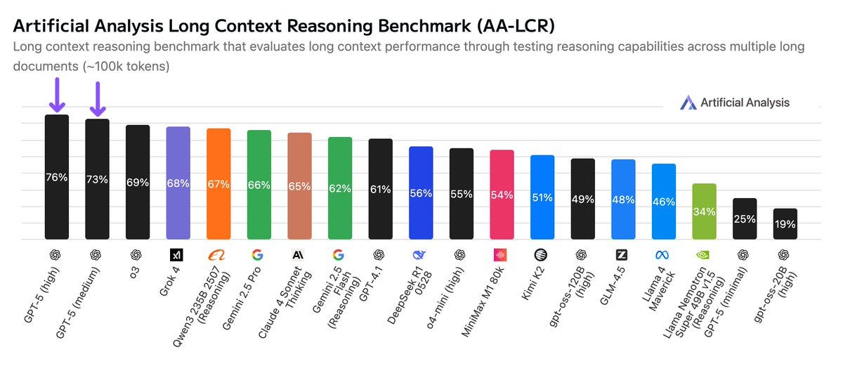 Artificial Analysis has GPT-5 on top for Long Context Reasoning (note that they do not test Opus on any of their benchmarks).