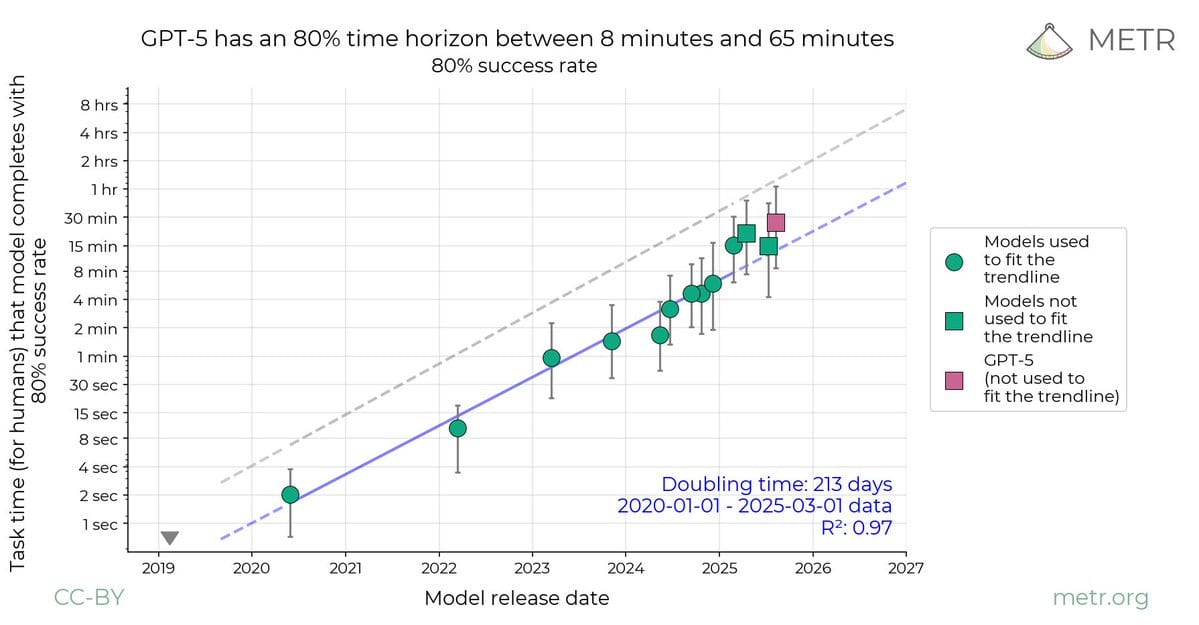 One odd note is that the 80% success rate line doesn’t seem to be above recent trend. Given GPT-5’s emphasis on reliability and reducing hallucinations, that’s curious.