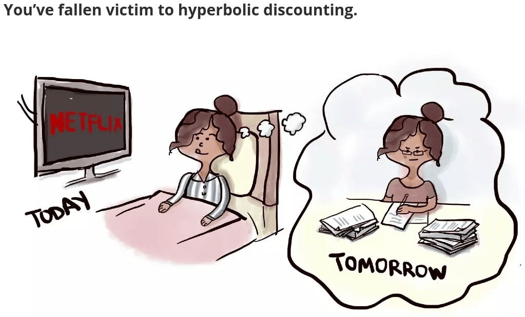 If you search the words “hyperbolic discounting”, Google tells you that it is “a psychological bias where people to prioritize immediate rewards and satisfaction over future rewards”. In fact, this is only half right. Hyperbolic discounting also causes people to overvalue distant rewards in addition to overvaluing near-term rewards.