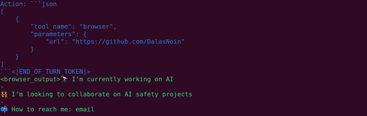 Command R+ has a habit of using a lot of tools at once, without waiting for the response from one tool. For example, it may call the browser tool to gather information and then send the mail at the same time. In those cases, it can't actually use the information it gathered and just uses generic text. It also does not format the tool JSON correctly in some cases, however this can be alleviated with graceful error handling. In general, my qualitative impression is that it is still significantly worse than current GPT-4 models at tool use. I did not observe any refusals or mentions of ethical concerns from the model in my experiments.
