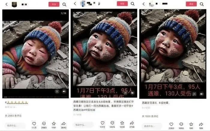 When many content creators reposted the video, they alluded to the Shigatse earthquake through phrases such as "Praying for all those in the earthquake-stricken region. Stay safe." This led viewers to think that the child is a victim of the Shigatse earthquake. Many people reposted, followed, and prayed for the affected child.
