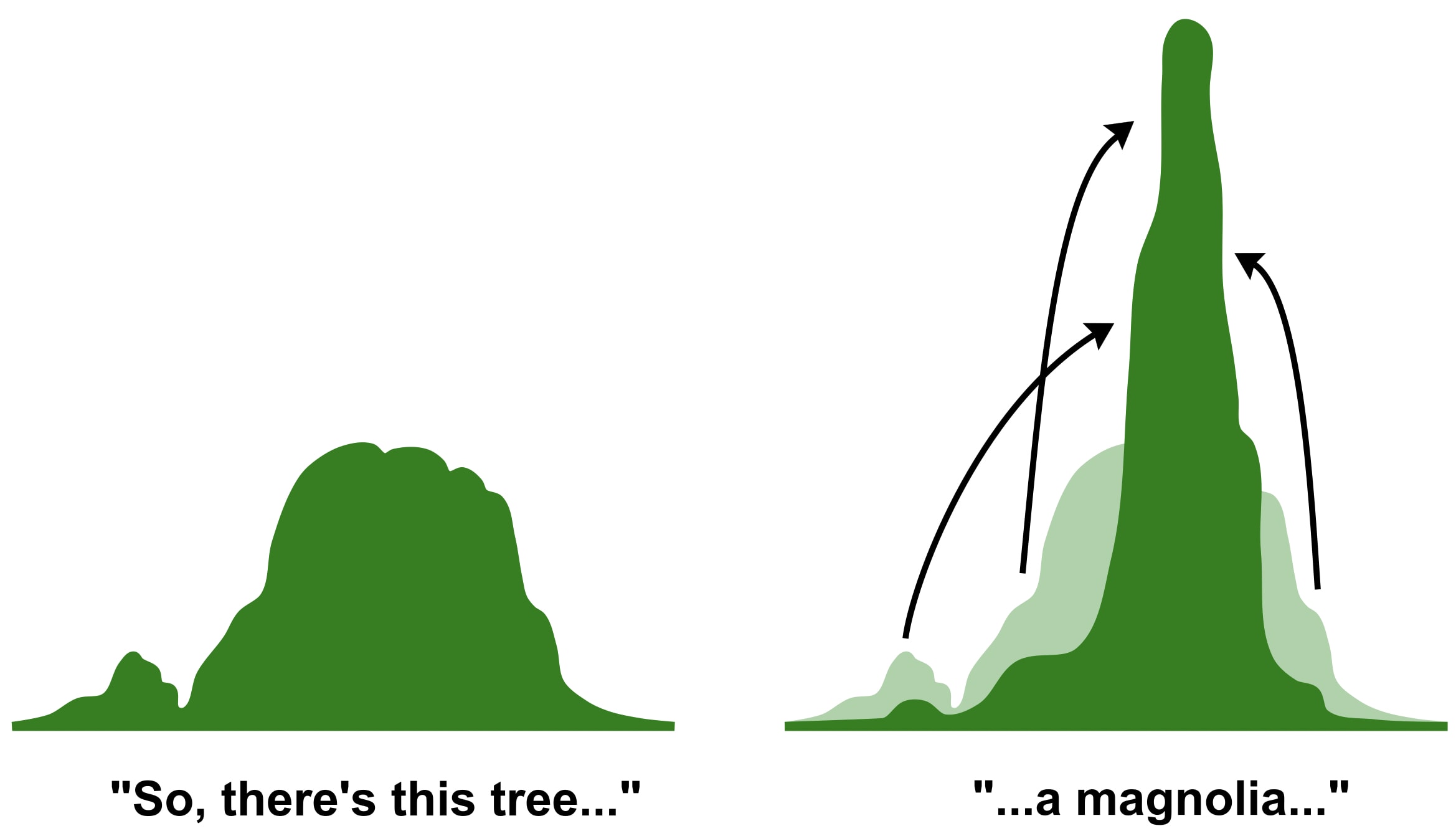Pause again after another couple of seconds, though, and they'd feel a lot more comfortable, because adding "...a magnolia" rules out a lot of things. Pines, for instance, and oaks, and bushes, and red balloons.