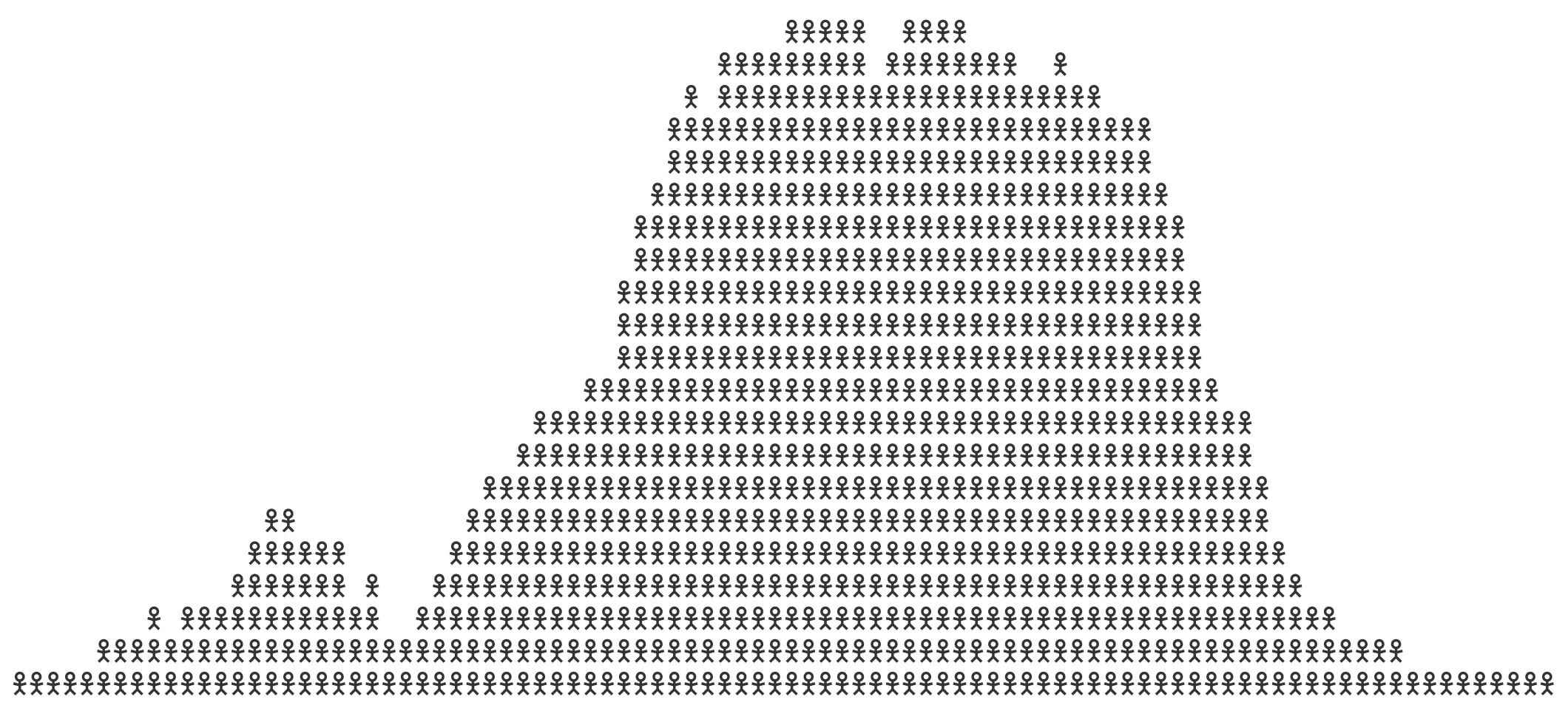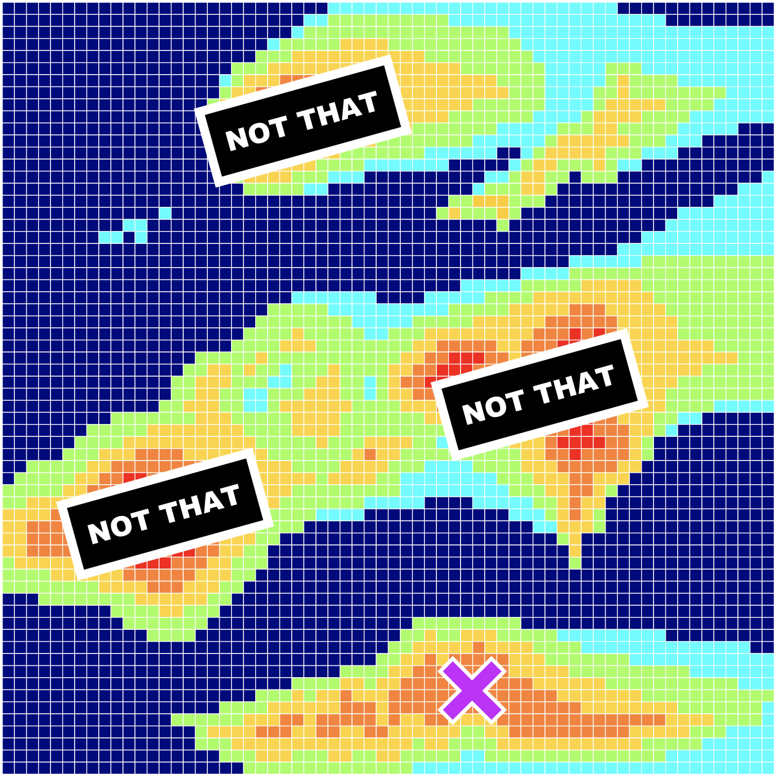 Imagine one of the bell curves from before, but "viewed from above," such that the range of responses are laid out in two-dimensional space. Someone is planning on saying [a thing], and a lot of people will hear it, and we're going to map out the distribution of their probable interpretations.