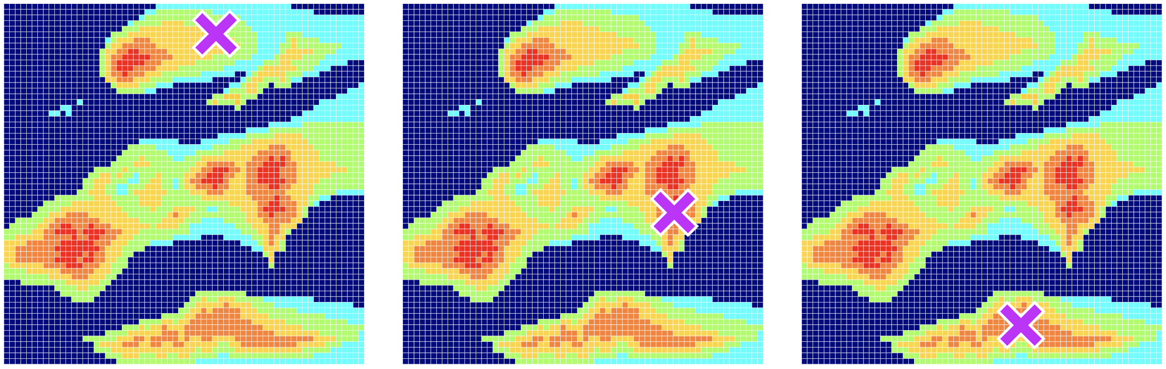 (We could, of course, explore all sorts of other possibilities, including possibilities on very different maps, but these three should be enough to highlight the general principle.)