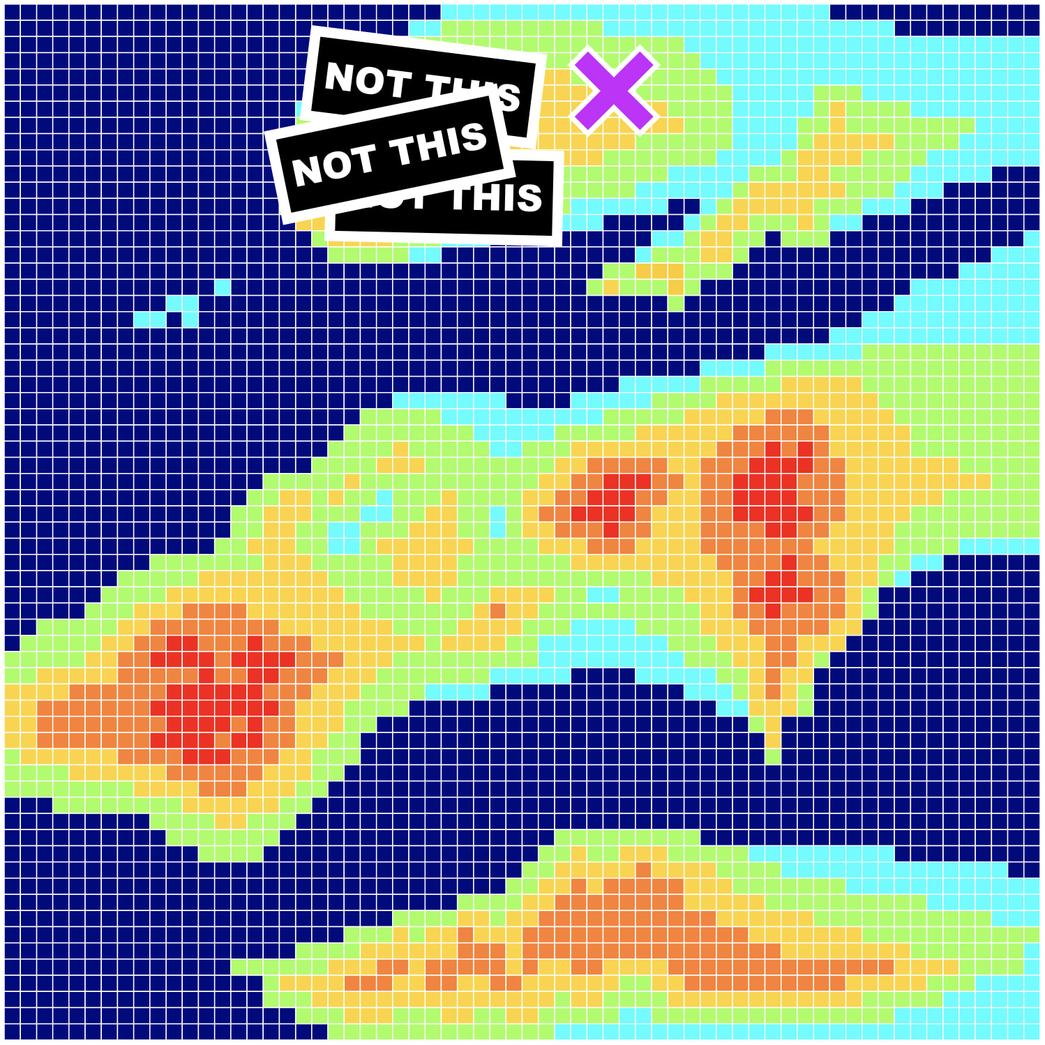 Red squares mean "very many people would hold this interpretation after hearing [thing]."