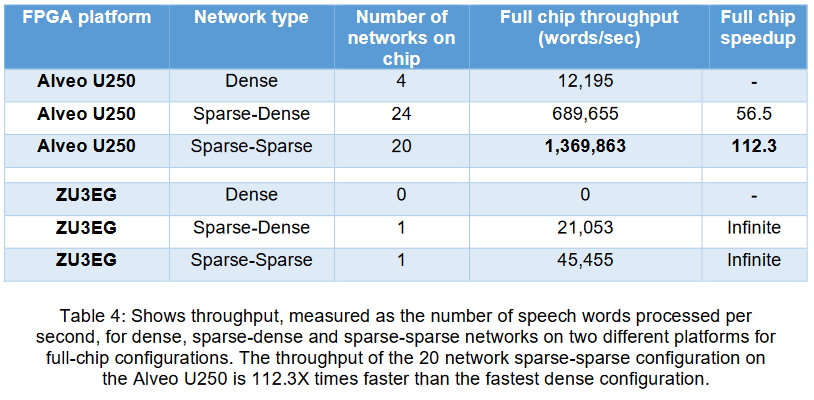 Using 8 bit compression of values via a unique mapping scheme, and running on FPGAs... hard to compare. Their mapping scheme pre-estimates the range of all variables, splits large numbers into lossy quantized representations spread across multiple 8 bit (INT8) numbers during encoding. So to get the equivalent of a FLOP, a floating point operation, you need to do several fixed-point 8 bit operations (FP-8bit-OPs). On average, maybe 4 FP-8bit-OPs per single precision FLOP?