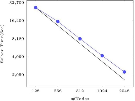 The benchmarking systems with hardware details, compiler toolchains and network fabrics are summarized in Table 3. The Blue Brain IV (BB4) and Blue Brain V (BB5) systems are based on IBM BlueGene/Q (Haring et al., 2012) and HPE SGI 8600 (Hewlett Packard Enterprise, 2019) platforms respectively, hosted at the Swiss National Computing Center (CSCS) in Lugano, Switzerland. The BB4 system has 4,096 nodes comprising 65,536 PowerPC A2 cores. The BB5 system has three different compute nodes: Intel KNLs with low clock rate but high bandwidth MCDRAM, Intel Skylakes with high clock rate, and NVIDIA Volta GPUs. Vendor provided compilers and MPI libraries are used on both systems. The BB4 system is used for strong scaling benchmarks (see Figure 8) as it has a large core count compared to the BB5 system. All benchmarks were executed in pure MPI mode by pinning one MPI rank per core.