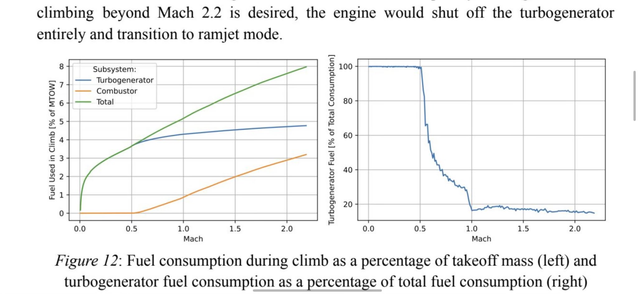 That was already my understanding, and it doesn't explain how electric motors help. It just describes an afterburning turbofan, which has low efficiency. At any speed from 0 to Mach 3, efficiency goes: low-bypass turbofan > turbojet > afterburning turbofan. That's worse efficiency, not better, so I asked about a specific fuel consumption graph, and got this: